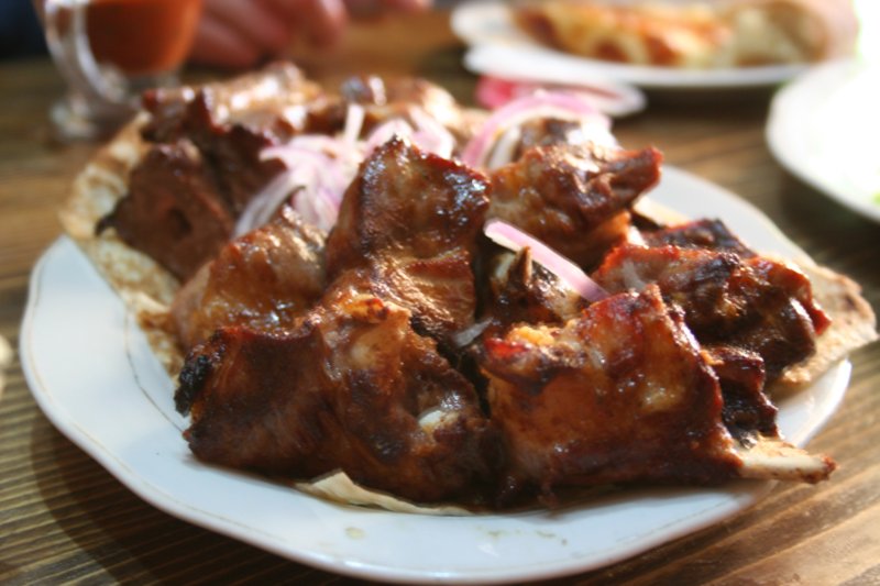 Шашлык. Шашлык мена разочаровал. Я ожидала супер вкусного мяса, но этот был на четверочку с минусом. Тем более что в Украине я пробовала шашлык приготовленный грузином – и это было фантастически вкусно. Удивило не качество мяса, а какой-то чудодейственный маринад из овощей (там были даже огурцы). Но рецепт он, к сожалению, не раскрыл.