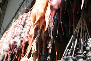 Это то что мне очень очень очень сильно понравилось. Форма домашней пиццы. Тесто наверно такое же как и в лаваше, а сверху сулугуни. Оказывает этот сыр чудесно плавится. Еще лучше запекается. Это те основные блюда, которые они едят каждый день и готовят дома. Из традиционных сладоcтей - виноградный сок с орехами со смешным названием - чурчхела и обилие сушенных фруктов.