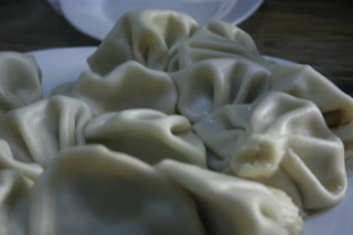 Хинкали. Я их назвала грузинскими пельменями. Вкусно. Даже очень. Но есть не удобно. Там фишка в том , чтобы весь сок из начинки сразу втянуть в себя. С непривычки не получалось. Верхушку из теста есть не надо. Нам об этом сказали в ресторане слишком поздно )))